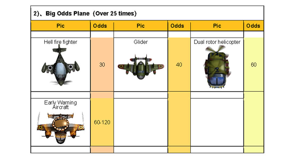 Destroying Early Warning Aircraft will be awarded a function of continuing flash to randomly destroy 2 to 12 planes with 2 to 25 times odds.